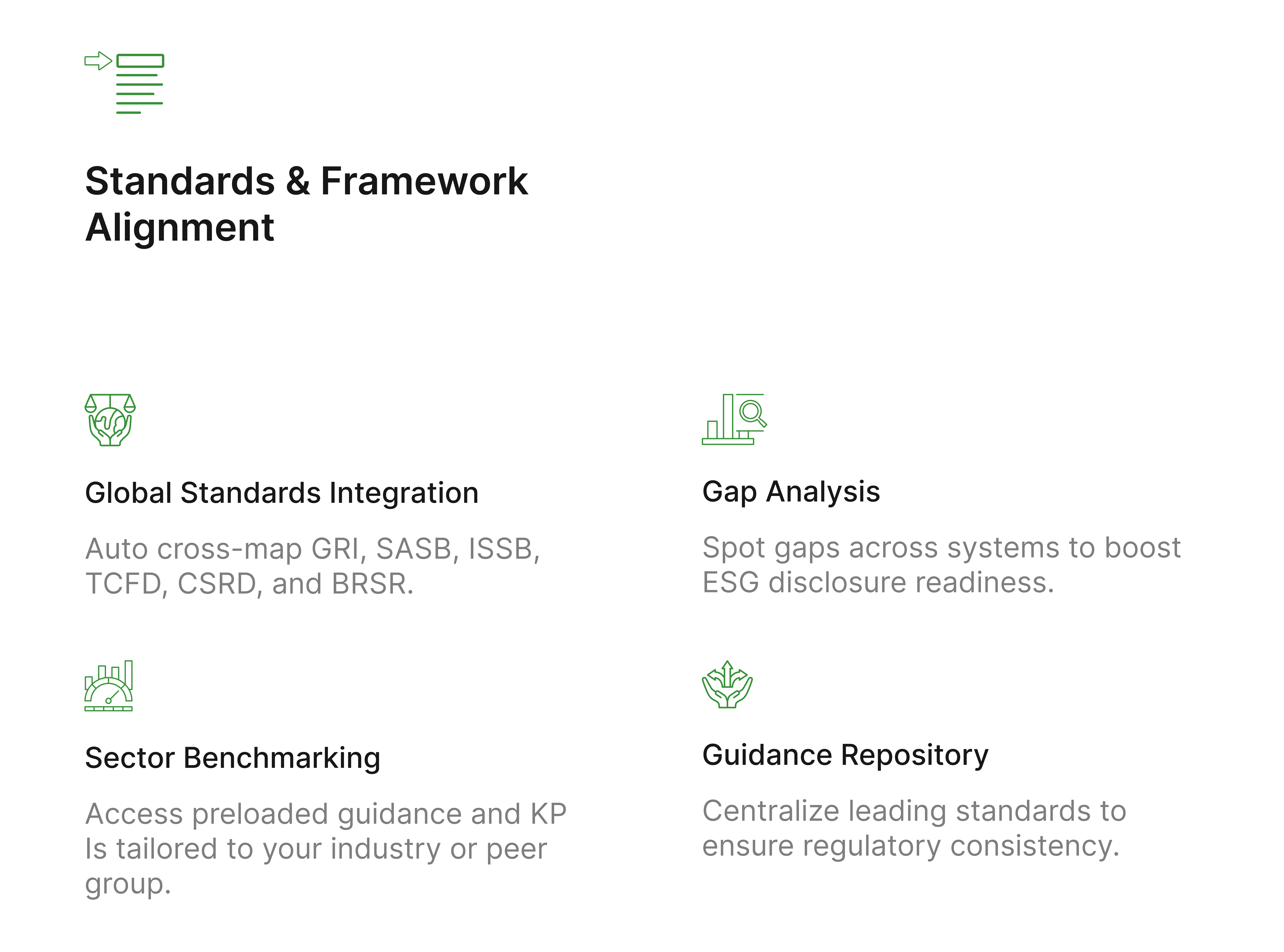 Assess gaps across data, processes, policies, and technology to strengthen Sustainability governance and disclosure readiness