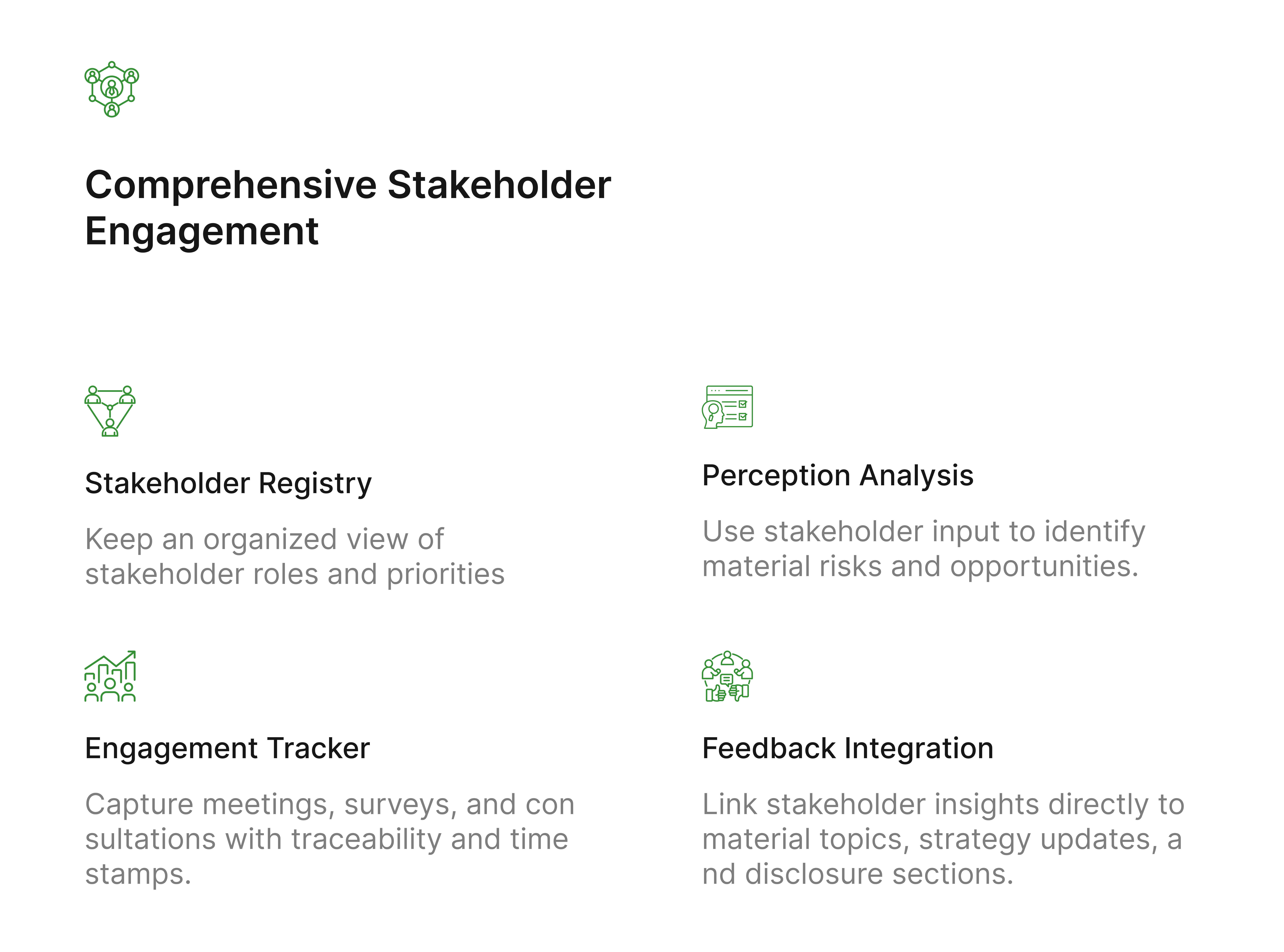 Identify and prioritize material topics using a data-driven and stakeholder-informed approach to align with global standards.